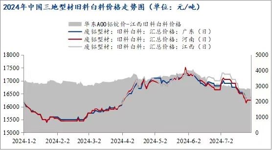 截止7月底,鋁價(jià)相對5月底高位時(shí)期下跌2800元/噸左右,下跌12.9%。而7月底再生鋁棒主要廢鋁原料之一的型材舊料白料價(jià)格在16250-16350元/噸,相比21700元/噸的鋁價(jià)高位時(shí)期,舊白料價(jià)格下跌1150-1200元/噸,下滑6.60%左右,廢鋁價(jià)格下跌幅度遠不及鋁價(jià)。在鋁價(jià)持續回落的單邊行情下,廢鋁貨場(chǎng)來(lái)不及出貨,持續處于虧損狀態(tài)。受成本端支撐,貨場(chǎng)挺價(jià)惜售意愿較強,市場(chǎng)上廢鋁流通量大幅減少,再生鋁棒企業(yè)采購困難,成本拉升。