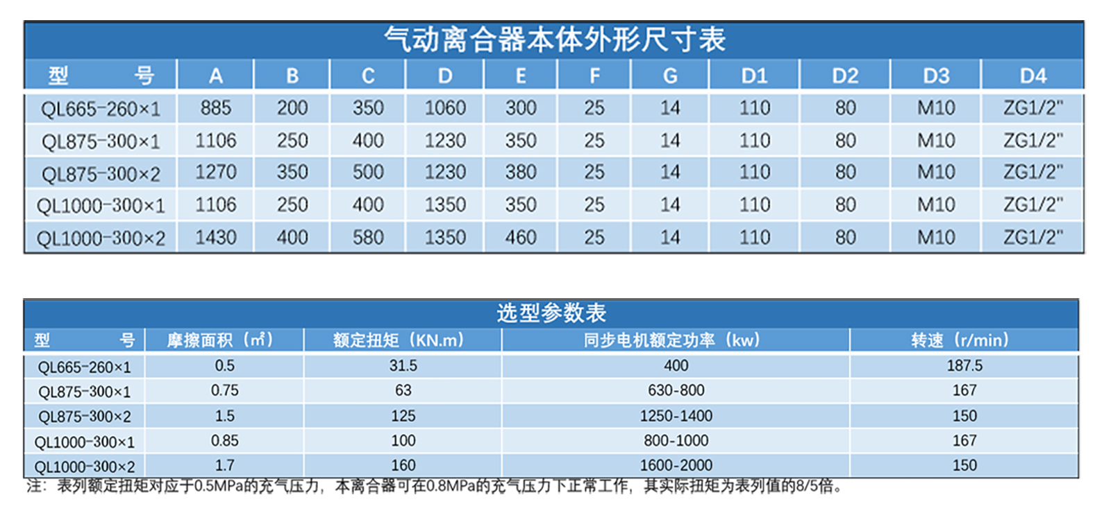 氣動(dòng)離合器常用型號: